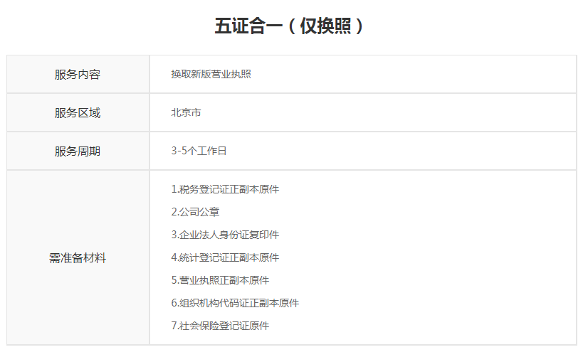 五证合一(仅换照)