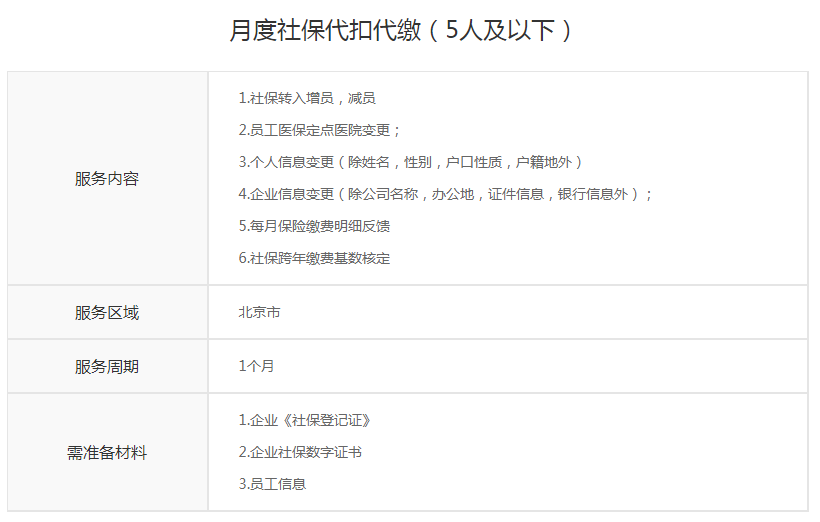 月度社保代扣代缴(5人及以下)